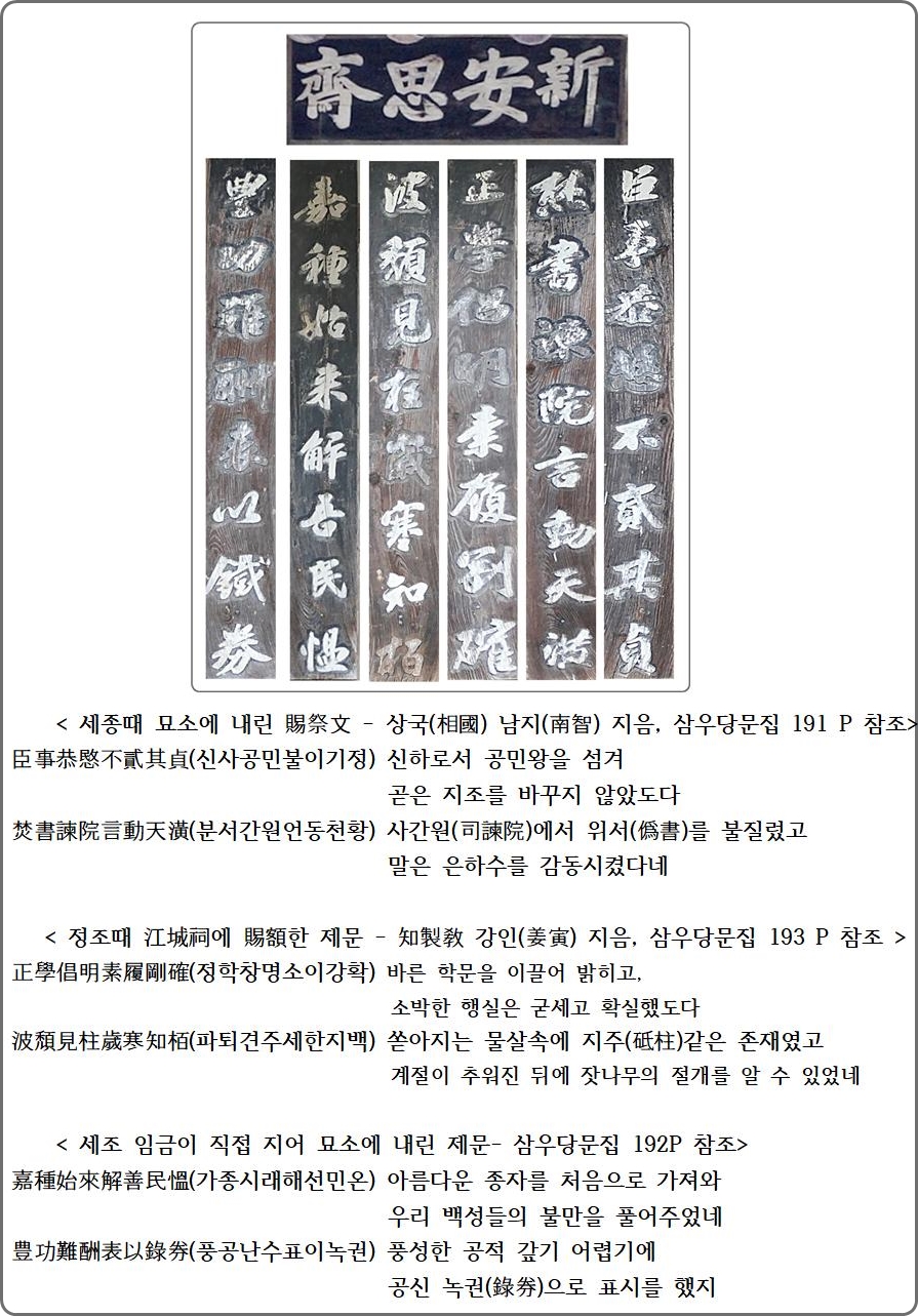 섬겨 모신 곳에 그 이름의 현판을 걸라는 은혜를 입지 못하면, 그것은 곧 국가가 베푸는 예법의 흠이 되온즉, 선비들이 애석히 여겨 탄식함을 무엇에 비하오리까? |