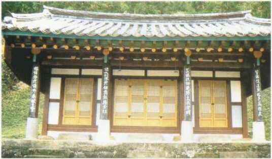 신실 崇德祠(숭덕사) 중건 앞면 3칸 옆면 1칸의 규모로 맞배지붕이며 겹처마로 건립 |