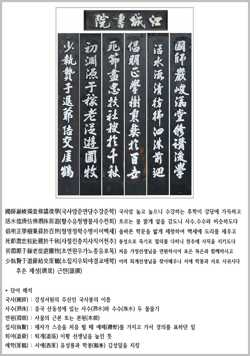 정조 을묘년에 임금께서 강성사(江城祠)라는 현판을 하사(下賜)하셨다.